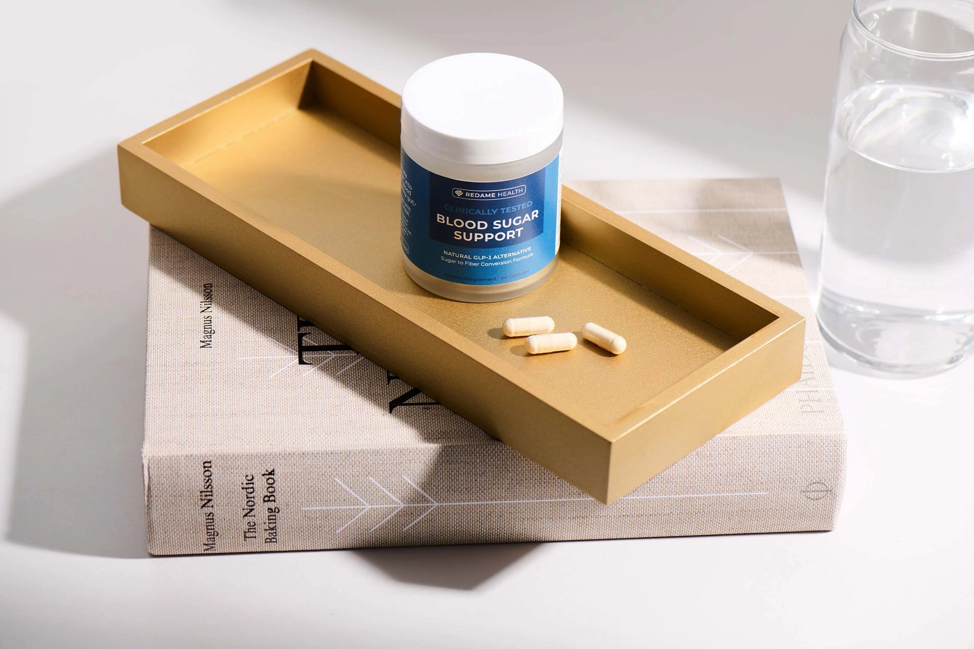 Our approach is non-pharmaceutical, rooted in smart science, and designed to fit seamlessly into daily life. Using clinically studied, patent-pending ingredients, it works with your body to reduce spikes, support balance, and promote lasting health.